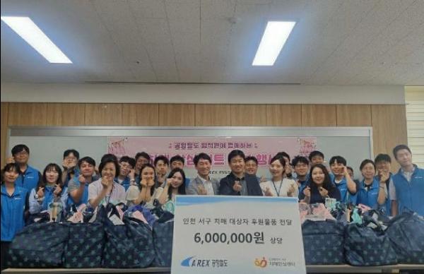 인천 서구 검암동 소재의 공항철도(주)는 지난 27일 서구 치매 대상자를 위한 나눔으로 600만원 상당의 물품을 치매안심센터에 전달하고 꾸러미를 싸는 봉사활동을 진행했다.