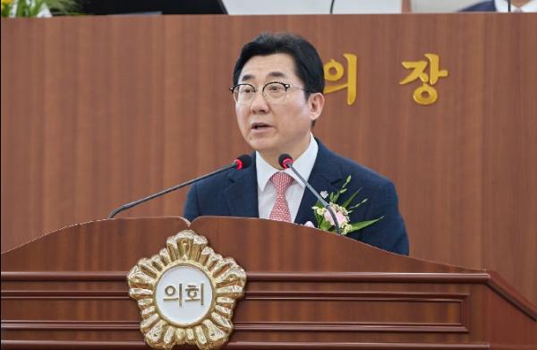 박경귀 시장은 1일 제9대 아산시의회 후반기 개원식에 참석해 “오늘은 제9대 아산시의회 후반기 개원일인 동시에 민선 8기가 반환점을 도는 의미 있는 날”이라면서 “그간 아산시 집행부는 시의회의 협력과 성원에 힘입어 많은 성과를 이룰 수 있었다”고 인사했다.