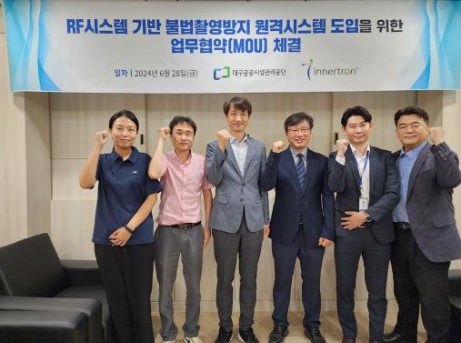 대구공공시설관리공단은 6월 28일 두류수영장 내 불법 촬영 범죄예방 등 안전한 이용환경 조성을 위해 RF기술 전문기업 ㈜이너트론과 업무협약을 체결했다.