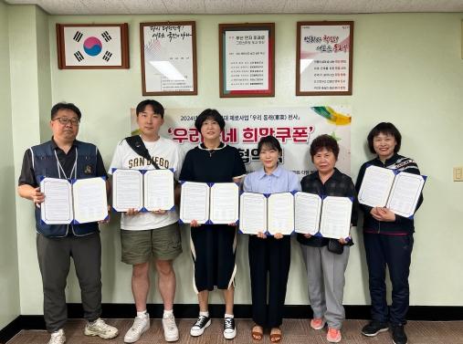 부산 동래구 수민동 지역사회보장협의체는 지난달 26일‘우리동네 희망쿠폰’사업 신규 협약업소 4개소(GS25 동래한양점, 탑프라자, 제이씨마트, 다담블랑제리)와 사업 추진 업무협약을 체결했다고 밝혔다.