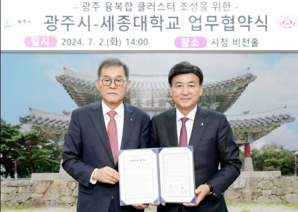 광주시는 2일 시청 6층 비전홀에서 세종대학교와 융복합 클러스터 조성사업을 위한 업무협약(MOU)을 체결했다.