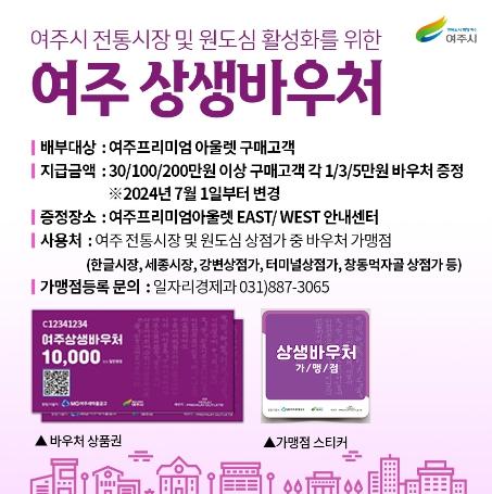 여주시는 경기 침체로 어려운 전통시장과 지역 상권 매출 증대 및 원도심 상권 활성화를 위해 ‘여주 상생바우처’를 2023년 9월 20일부터 운영해 왔다.