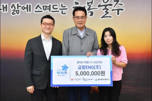 (주)금항ENG가 2일 군청 소회의실에서 이순걸 군수와 권미진 대표, 울산 사회복지공동모금회 양호영 사무처장 등이 참석한 가운데 이웃돕기 성금 500만원을 전달했다.