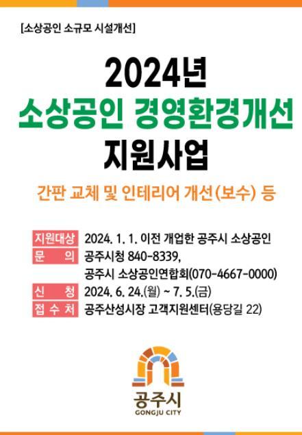 공주시가 관내 소상공인을 대상으로 경영환경 개선 지원사업을 실시한다고 3일 밝혔다.