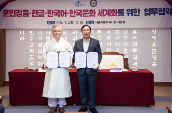 최민호 시장은 “과학적이고 우수한 문자인 훈민정음·한글의 위상을 전 세계에 알리고 한국문화가 주류로 자리매김하는 시대가 올 수 있도록 양 기관이 협력해 노력하겠다”고 말했다.