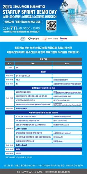 서울시는 글로벌 의료·진단기업 로슈 진단, 한국과학기술연구원(서울바이오허브 위탁운영 기관)과 진단 분야 혁신 스타트업 발굴을 위한 ‘2024 서울-로슈 진단 스타트업 스프린트 데모데이’를 오는 7월 11일 서울바이오허브 글로벌센터에서 개최한다.