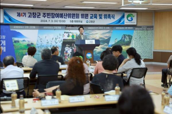 고창군이 3일 오후 고창군청 5층 대회의실에서 ‘제4기 고창군 주민참여예산위원회’ 위촉식 및 역량강화 교육을 진행했다.