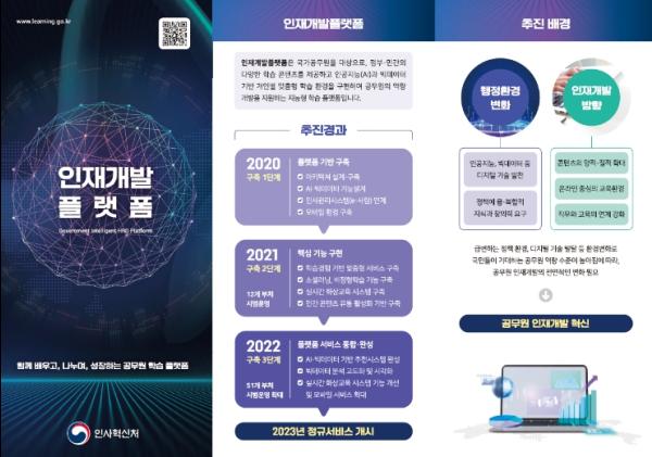 인재개발플랫폼은 정부와 민간의 다양한 학습콘텐츠를 한곳에 모은 학습 중추(허브)이자, 인공지능과 빅데이터 기반 맞춤형 학습을 지원하는 지능형 학습 체계(시스템)이다.