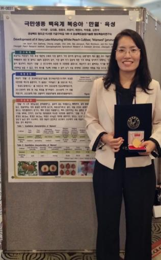 이지윤 박사는 고품질의 우수한 복숭아 품종 다수 개발과 보급 확대에 크게 기여해 미래 한국육종 발전을 견인할 젊은 과학자로 인정받아 본 상을 수상하게 됐다.