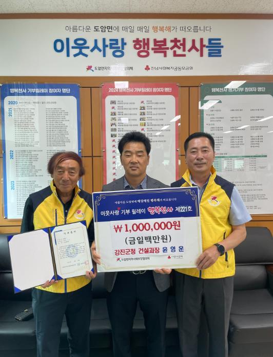 윤영운 강진군청 건설과장이 지난 2일, 도암면지역사회보장협의체 ‘행복천사 기부 릴레이’에 100만원을 기부해 지역사회에 따뜻한 온정을 전했다.