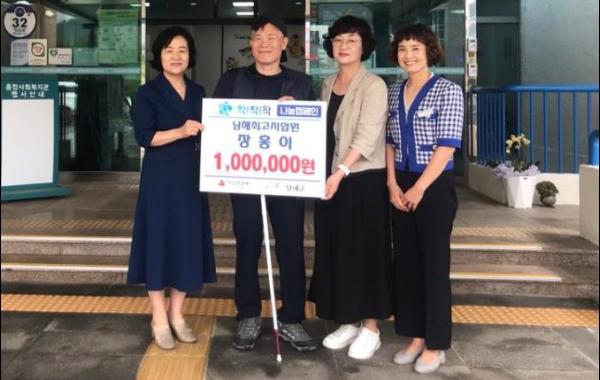남해군은 지난 3일 남해최고지압원 장홍이 대표가 군민들을 대상으로 한 장애인인식 개선 강의 수익금 100만 원을 기탁하였다.