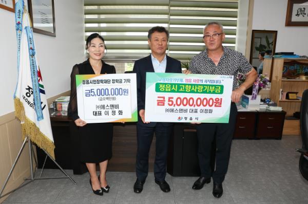 ㈜에스앤비 이정화 대표는 4일 정읍시에 고향사랑기부 최고한도액인 500만원을 기탁했다.