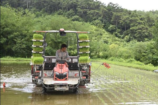 남원시 가루쌀 생산단지에서 올해 가루쌀 모내기를 시작했다.