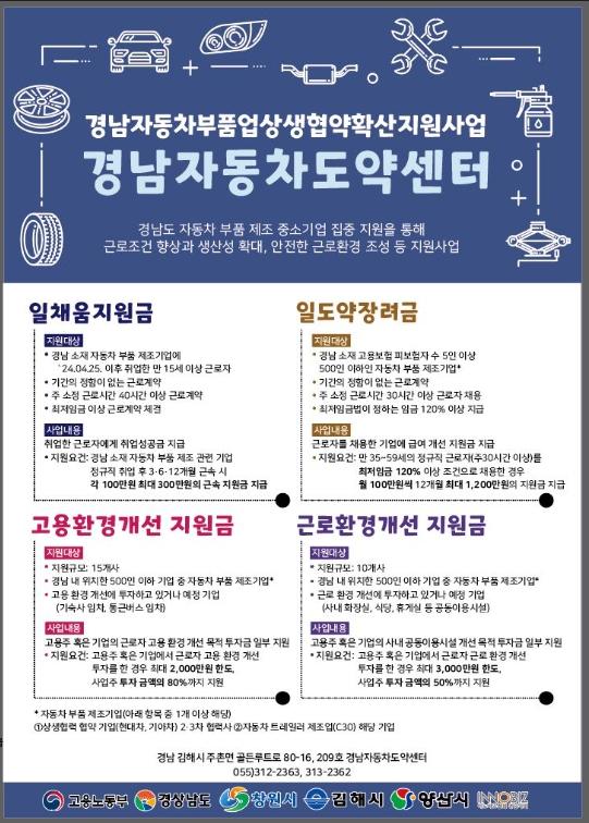 '근로환경개선 지원금'은 매출액 100억 원 이하 자동차 부품기업을 대상으로 한다.