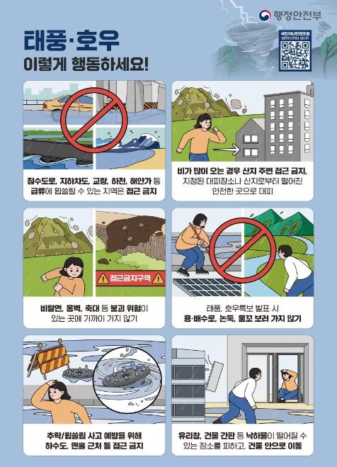 ▶비탈면, 저지대, 지하차도, 해안가 등 취약지역·시설에 대한 예찰 활동을 강화하고, 위험 요소 발견 즉시 조치하여 피해를 방지할 것