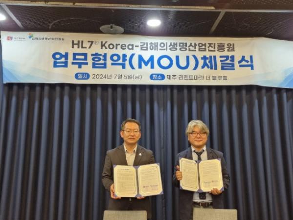 김해의생명산업진흥원과 HL7 KOREA가 상호운용성시험 협력체계 구축을 위해 손잡았다.