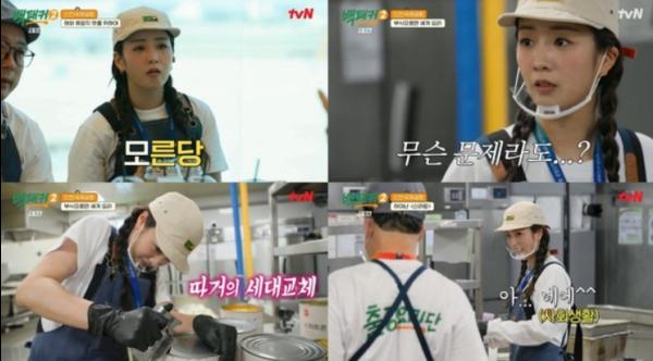 삼엄한 보안 검색을 거쳐 인천국제공항 상주 직원 식당으로 이동한 윤보미는 해외 휴양지 맛을 내야 하는 이날의 미션 수행을 위해 본격적으로 팔을 걷어붙였다.