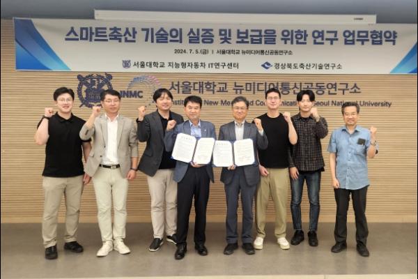 경상북도축산기술연구소는 5일 서울대학교 지능형자동차IT연구센터와 서울대학교에서 스마트 축산 기술의 실증 및 보급을 위한 상호 양해각서(MOU)를 체결했다.