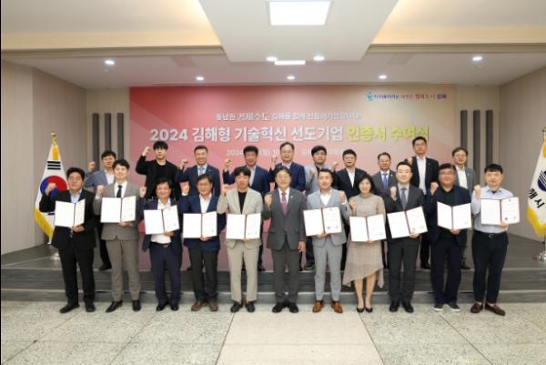 시는 이날 시청 대회의실에서 2024년 김해형 기술혁신 선도기업으로 선정된 10개사에게 인증서를 수여했다.