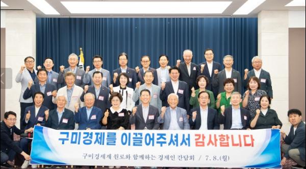 구미시는 8일 호텔금오산에서 구미경제를 이끌어 가는 경제계 원로와 전?현직 경제인, 기업인 등 40여 명이 참석한 가운데 간담회를 개최했다.