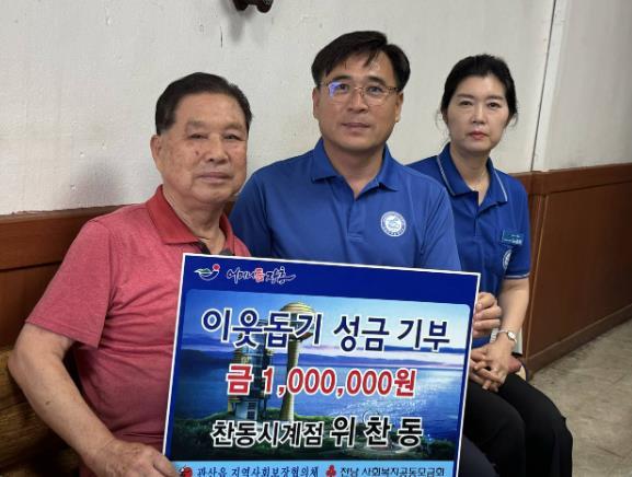 장흥군 관산읍 찬동시계점 위찬동 대표가 9일 도움의 손길을 필요로 하는 어려운 이웃을 위해 성금 100만원을 기부했다.