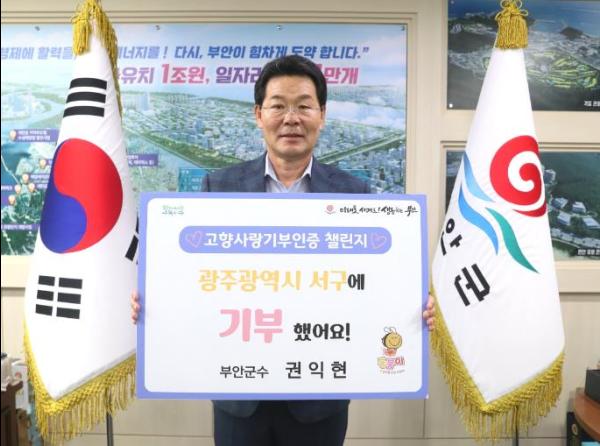 권익현 부안군수는 9일 고향사랑기부제 활성화를 위한 고향사랑기부 인증 챌린지에 동참했다.