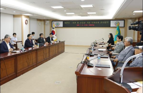 대전시는 9일 오후 대전시청 중회의실에서 국내 유망기업 6개 사와 1,077억 원 규모 투자, 115개 일자리 창출을 위한 업무협약을 체결했다.