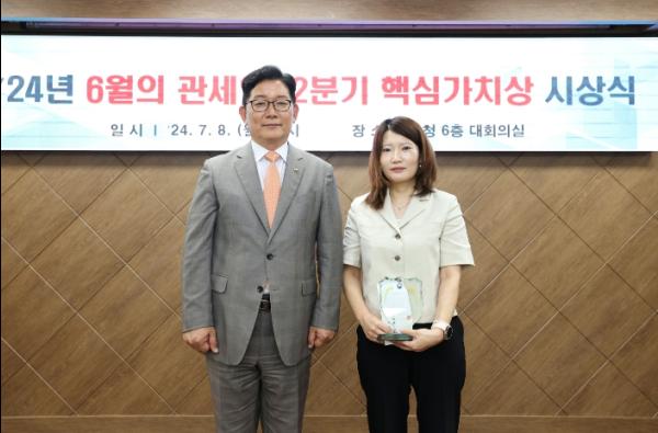 관세청은 7월 8일 ’24년 6월의 관세인 및 업무 분야별 유공자와 ’24년 2분기 핵심가치상 수상자를 선정해 시상했다고 밝혔다.