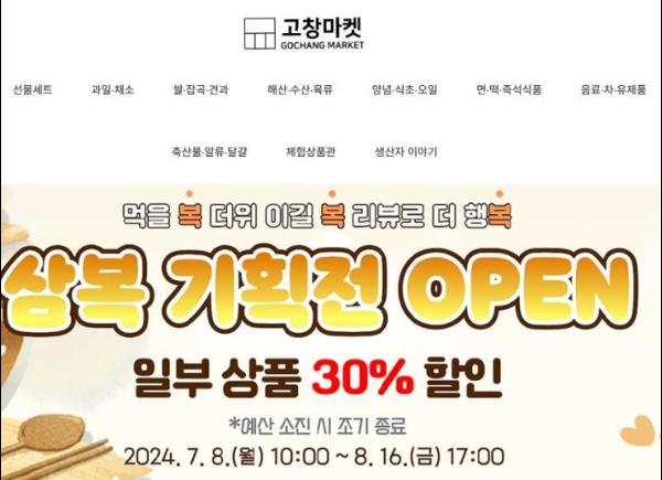 군은 하반기에도 ‘고창마켓’의 다양한 온라인 프로모션과 이벤트를 기획하고 고창마켓 상표 브랜드 개발을 통한 검색광고 유입증대, 해외쇼핑몰 진출 등 판매 플랫폼을 더욱 확대해 나갈 계획이다.