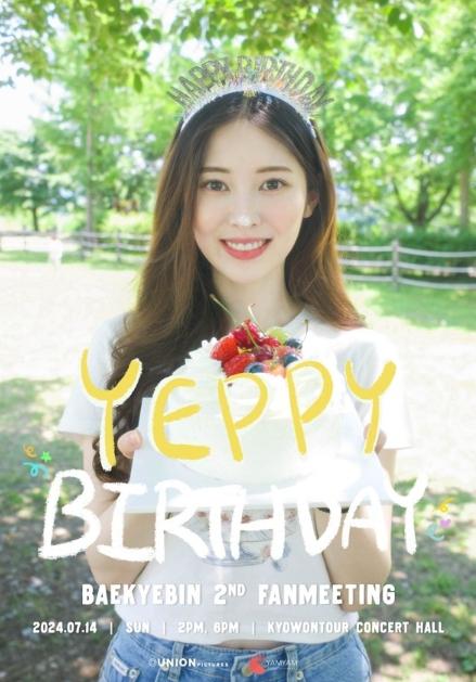 소속사 냠냠엔터테인먼트는 10일 "백예빈이 오는 14일 서울 종로구에 위치한 교원투어 콘서트홀에서 '2024 BAEKYEBIN 2nd FANMEETING : YEPPY BIRTHDAY(2024 백예빈 두 번째 팬미팅 : 예피 버스데이, 이하 'YEPPY BIRTHDAY')'를 개최한다"고 밝혔다.