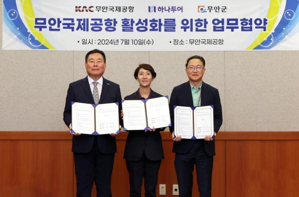 무안군, ㈜하나투어, 한국공항공사는 지난 10일 무안국제공항에서 무안국제공항 활성화를 위한 업무협약을 체결했다.