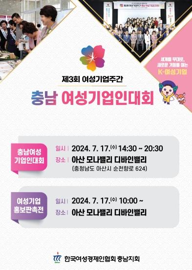 충남도는 오는 17일 아산 모나무르에서 ‘충남 여성기업인대회’를 개최한다고 밝혔다.