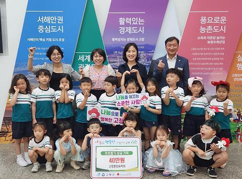 이번에 기탁된 40만원의 성금은 고창중앙유치원 7살 아이들의 바자회 운영을 통한 직접 얻은 수익금 전액으로 이루어져 있어 의미가 더욱 깊다.