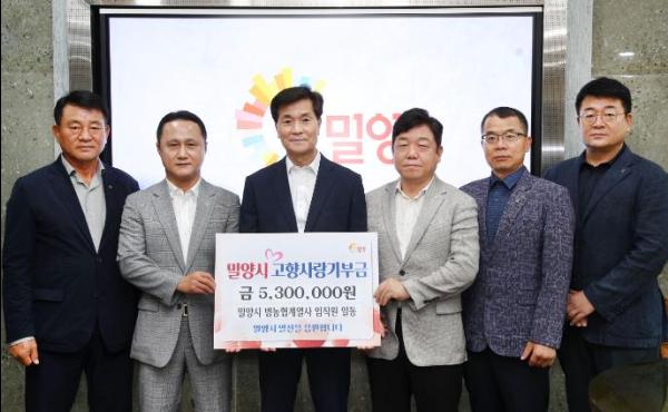 밀양시는 범농협 계열사 임직원들이 지난 10일 시청 시장실을 방문해 고향사랑기부금 기탁을 했다고 밝혔다.