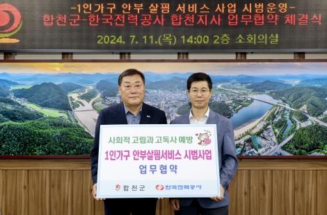 합천군은 지난 11일 고독사 예방 및 사회안전망 구축을 위해 한국전력공사 합천지사와 ‘1인 가구 안부 살핌 서비스’ 업무협약을 체결했다.