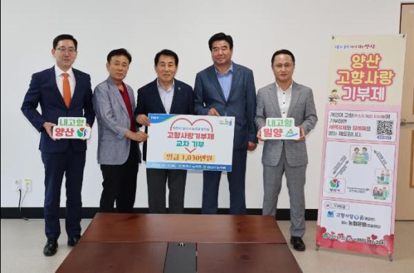 나동연 양산시장은 “지난해에 이어 올해도 고향사랑기부제에 동참해준 밀양 농 · 축협 임직원분께 진심으로 감사드리며, 이번 상호기부가 양산과 밀양 간 우호 증진과 다양한 분야에서의 지속적인 교류로 이어지길 바란다”고 말했다.