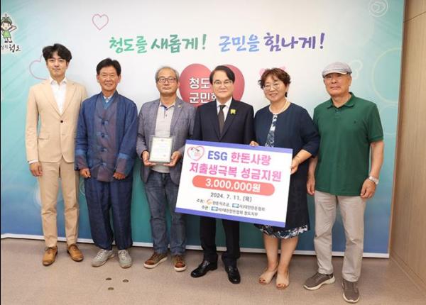 청도군은 지난 11일 강산농장 대표 박종우가 저출생 극복 성금 500만 원, (사)대한한돈협회 청도군지부가 300만 원을 기탁했다고 밝혔다.