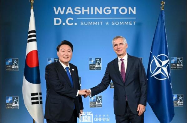 윤석열 대통령은 오늘(현지 시각 7. 11, 수) 오전 '옌스 스톨텐베르그(Jens Stoltenberg)' 북대서양조약기구(NATO, North Atlantic Treaty Organization) 사무총장을 면담하고, 주요 국제 현안과 한-NATO 협력에 대해 의견을 교환했다.