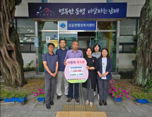 김복해 ㈜삼화테크 대표는 12일 어려운 이웃을 위해 써달라며 삼동면행정복지센터(면장 김지영)에 이웃돕기 성금 150만 원을 기탁했다.
