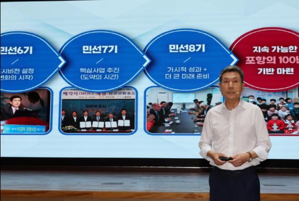 포항시는 이러한 성과들을 바탕으로 ▲신산업 중심 고부가가치의 지식 산업도시 ▲탄소중립과 기후변화에 대응하는 친환경·에너지허브도시 ▲지방소멸 시대를 극복하고 최고의 정주여건을 갖춘 균형발전 거점도시 ▲즐거움과 행복이 가득한 해양문화관광도시 ▲대한민국을 대표하는 국제 거버넌스 도시로 포항의 미래를 완성한다는 방침이다.