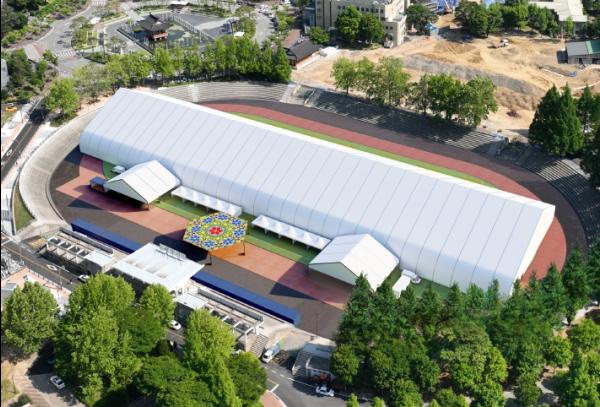 대회 기업전시관은 기업전시관은 철구조물을 활용한 폐쇄형 실내공간으로 총 8,200㎡의 규모로 전북대학교 대운동장에 조성된다.