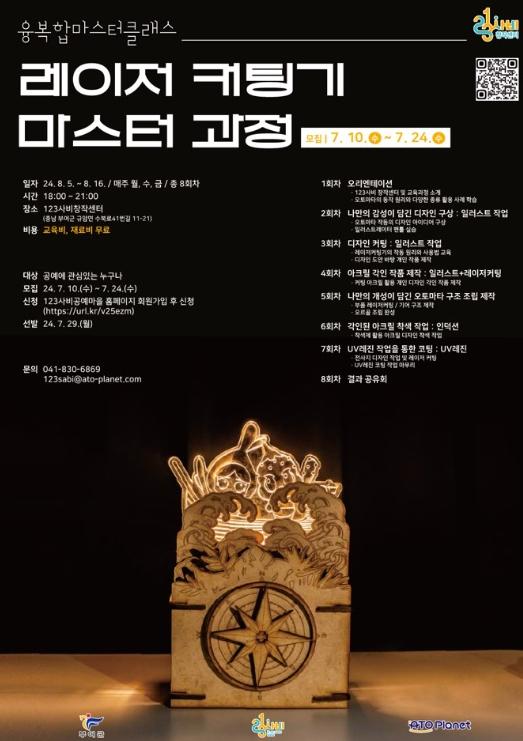 부여군의 123사비창작센터에서는 디지털 장비를 활용해 창작 능력을 향상하기 위한 ‘레이저커터 마스터 과정’ 교육생을 오는 24일까지 모집한다.