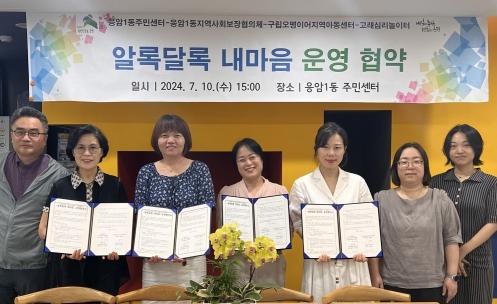 은평구 응암1동은 지역사회보장협의체 주관으로 ‘포수마을 아이 마음 건강플러스 프로젝트(I), 알록달록 내마음’ 운영을 위한 업무 협약을 지난 10일 진행했다고 밝혔다.