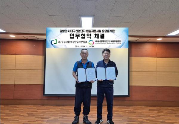 대구공공시설관리공단 달서천사업소는 7월 15일 대구염색산업단지관리공단 열병합발전소와 서대구 완충저류시설의 효율적 운영을 위한 업무협약을 체결했다.