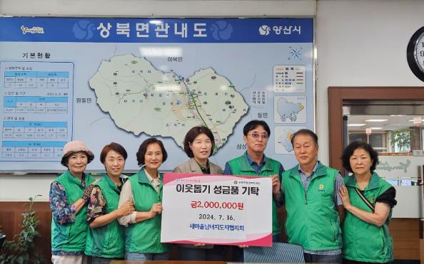 양산시 상북면 행정복지센터는 16일 상북면 새마을남녀지도자협의회에서 취약계층을 위한 성금 200만원을 기탁했다고 밝혔다.
