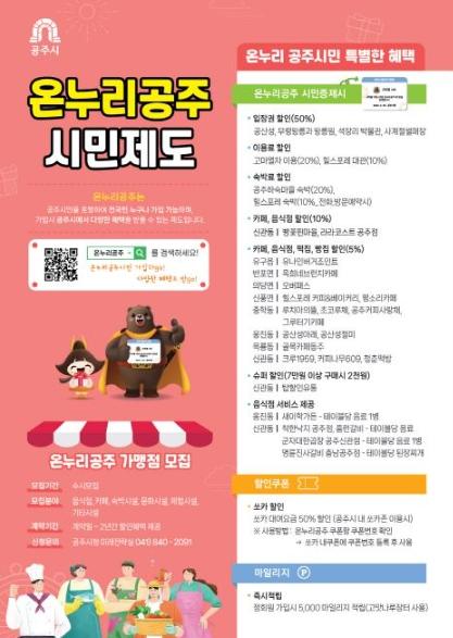 온누리공주 가맹점은 수시 모집 중이며, 가입을 희망하는 업체에서는 공주시청 미래전략실 고향사랑팀으로 문의하면 된다.