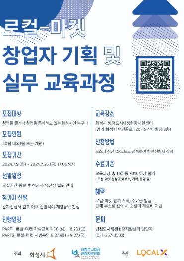 화성시가 예비창업자 또는 창업자가 로컬마켓을 활용한 새로운 수익모델을 개발하고 직접 마켓을 운영해볼 수 있도록 지원하는 ‘로컬-마켓 창업자 기획 및 실무 교육과정’ 참가자를 오는 26일까지 모집한다.