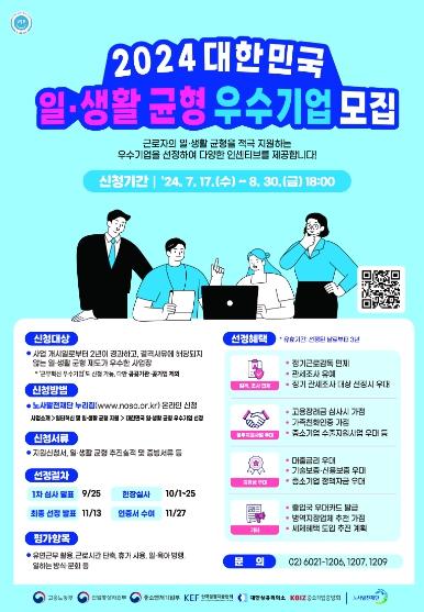 7월 17일 고용노동부는 산업통상자원부, 중소벤처기업부, 한국경영자총협회, 대한상공회의소, 중소기업중앙회와 함께 “대한민국 일?생활 균형 우수기업”을 선정하여 파격적인 혜택을 제공하기로 하고 올해 선정계획을 발표했다.
