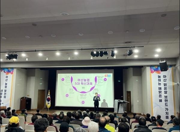 시는 장기적인 농업 비전 제시와 효율적인 농업 지원 정책 마련을 위해 △아산쌀 생산성 혁신 △농업기술센터 기술지도기능 강화 △재해 등 농업 분야 예산 사용 효율성 제고 △농협 로컬푸드 직매장 수수료율 인하 △학교급식 운영 전면 전환 등 아산시 농정분야 5대 혁신과제 추진을 시작했다.