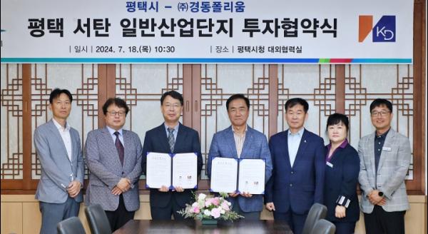 평택시는 18일 평택시청 대외협력실에서 ㈜경동폴리움과 투자협약을 체결했다고 밝혔다.